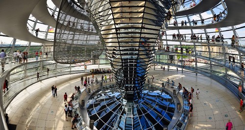 A cúpula do Reichstag, concebida por Norman Foster, é um dos pontos de atracção turística de Berlim.